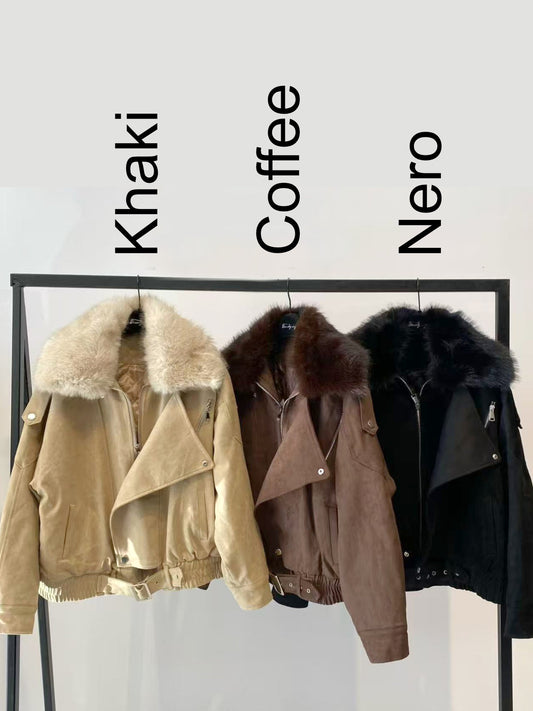 Giubbino scamosciato con collo in pelliccia