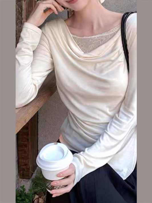 Maglia con scollo morbido in pizzo