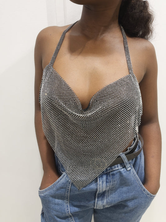Top di strass a triangolo