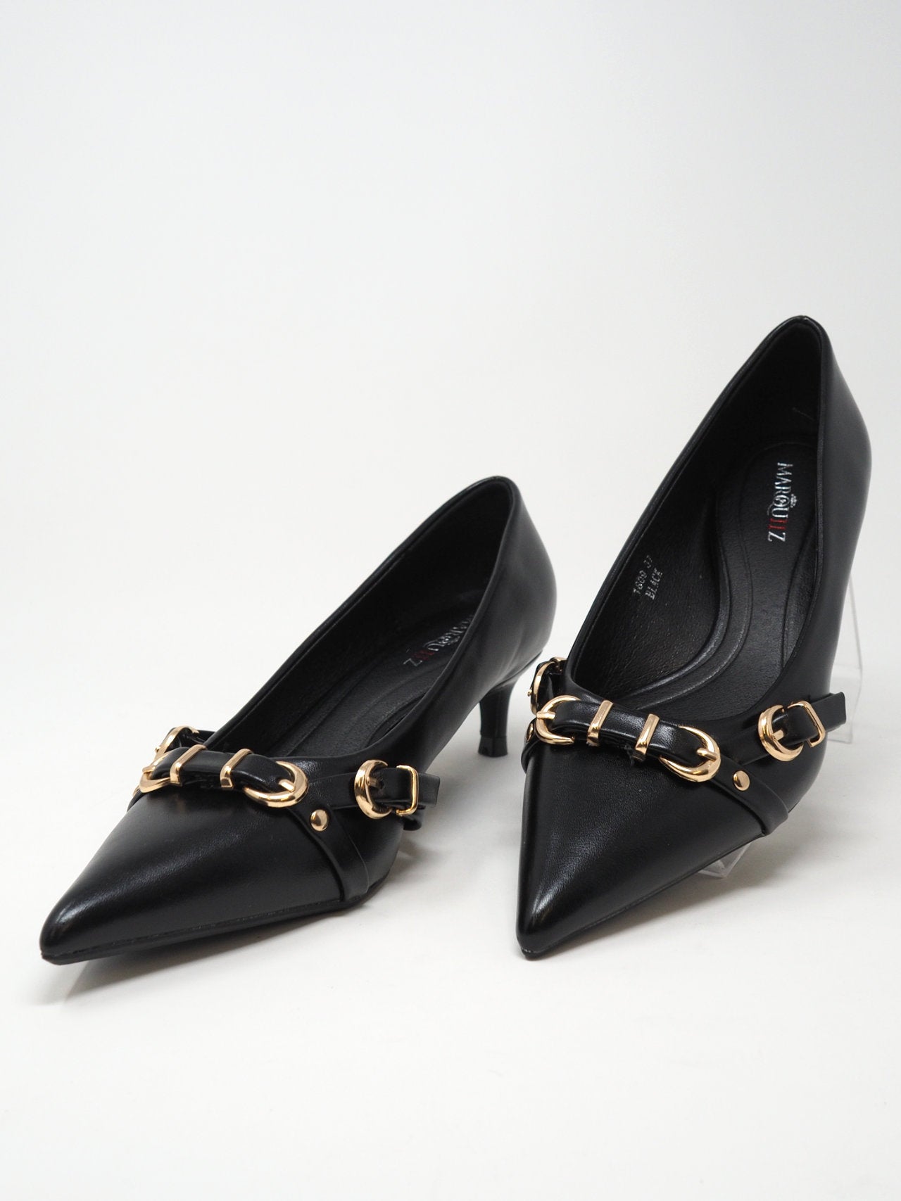 - Eleva il tuo stile al livello successivo con le nostre irresistibili scarpe décolleté con fibbia in punta e tacco basso. Lasciati conquistare dalla loro eleganza e silhouette, che catturano gli occhi e il cuore, e donano un tocco di classe e luminosità al tuo outfit. Non perdere l'occasione di aggiungere un tocco di stile e brillantezza al tuo guardaroba!
