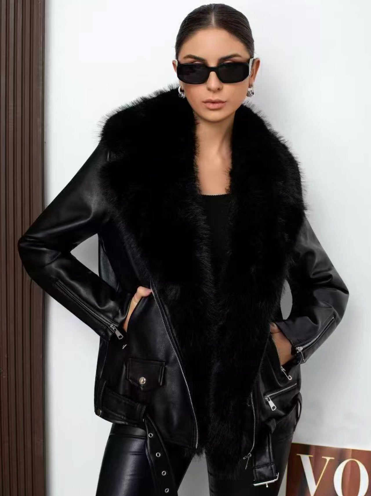 - Aggiorna il tuo stile con questo giubbino in ecopelle, foderato con pelo sintetico e arricchito da un collo in morbida pelliccia ecologica. Ideale per le giornate miti d’autunno, aggiunge personalità e originalità a qualsiasi outfit.