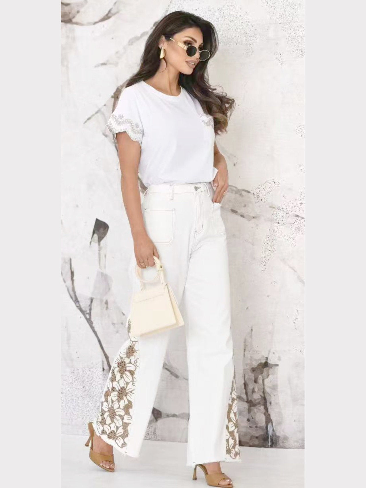 Jeans a palazzo ricamati