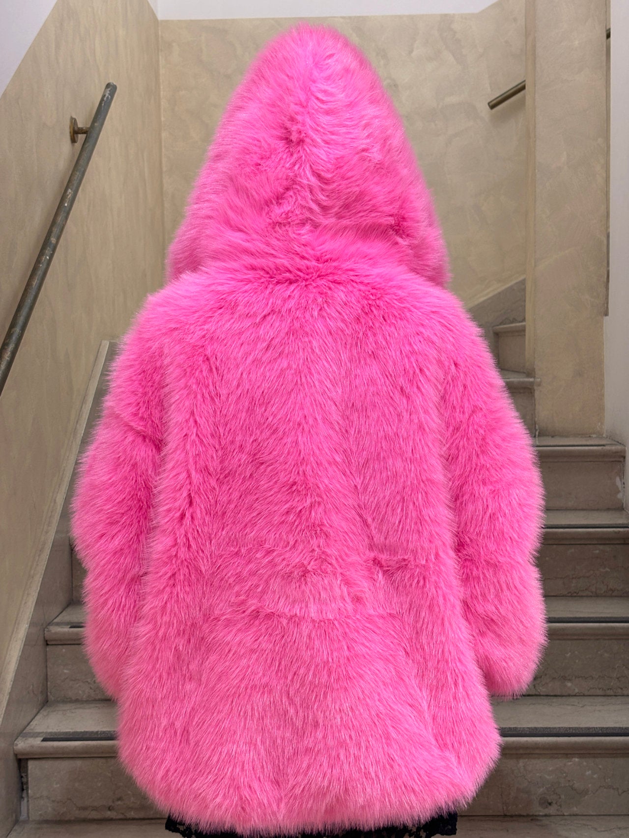 Pelliccia ecologica con cappuccio