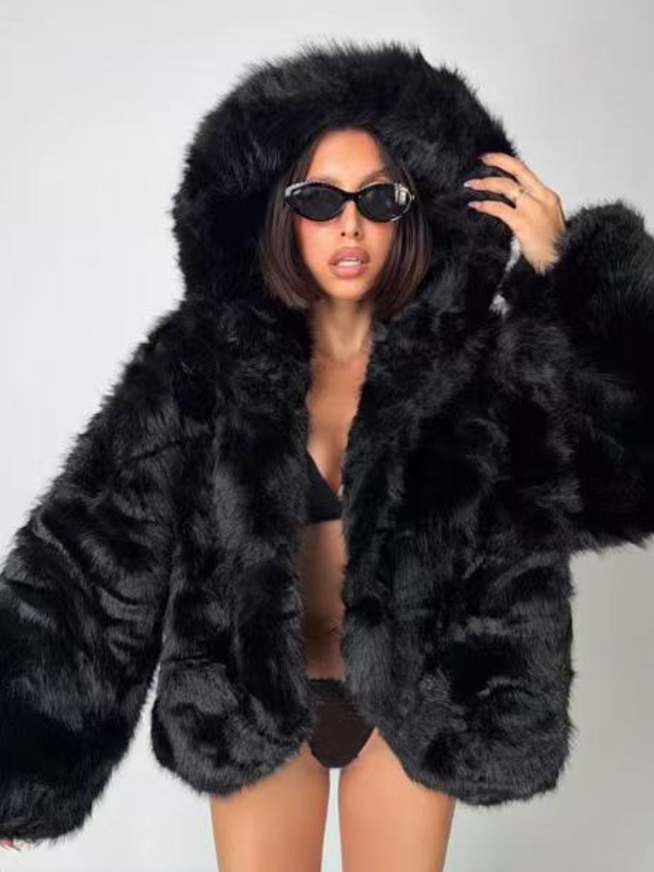 - Rinnova il tuo stile con questa pelliccia ecologica dotata di cappuccio! Entra nel mondo delle tendenze più attuali e distinguiti con un look originale e indimenticabile.