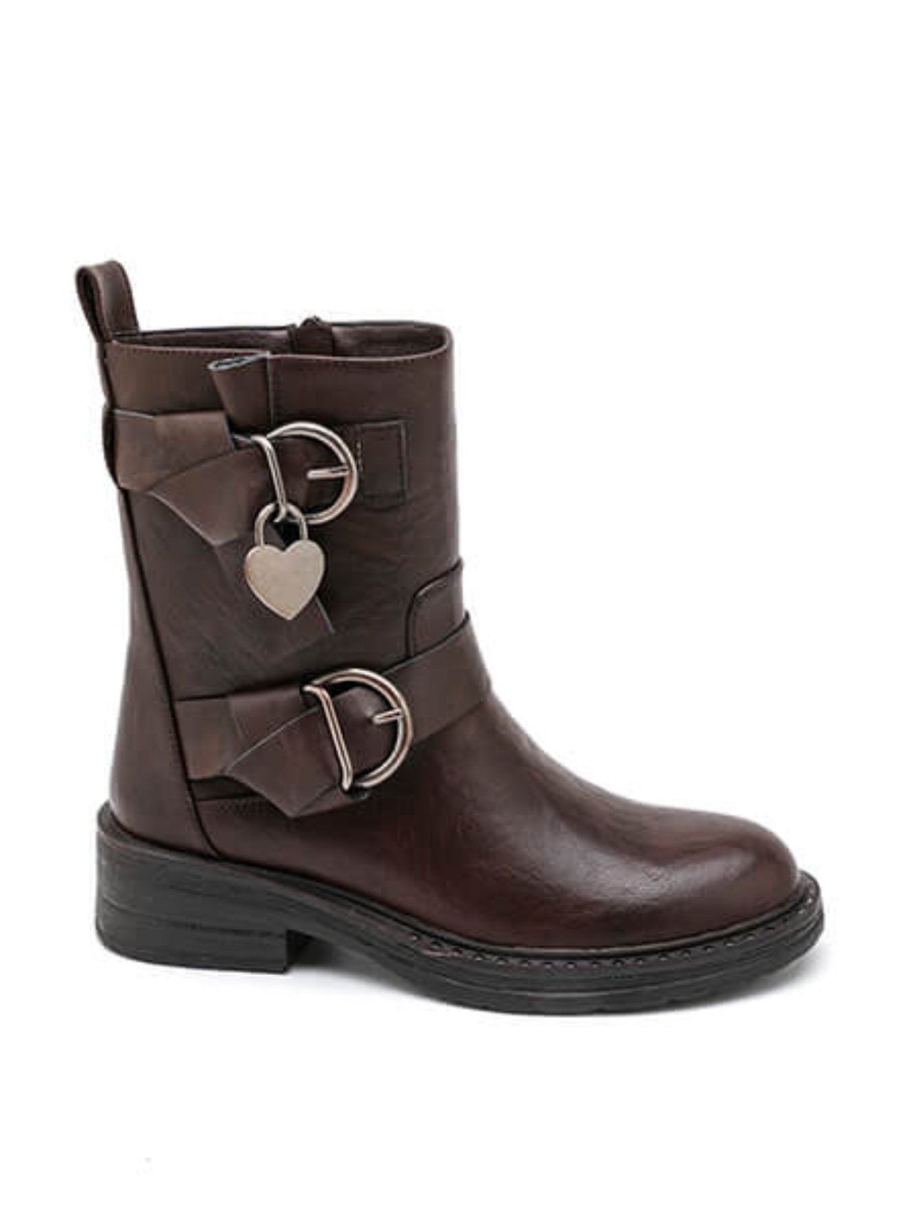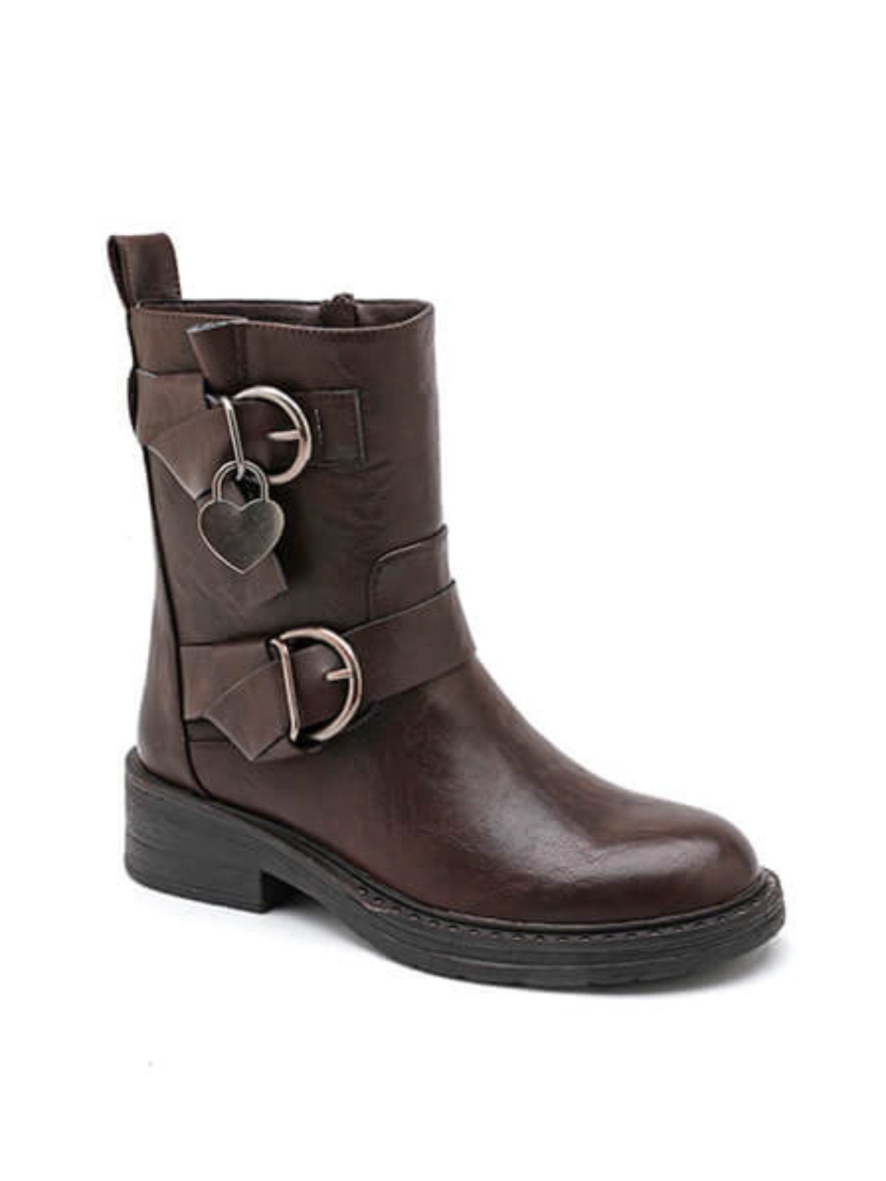 Stivaletti che uniscono comfort e carattere: il morbido rivestimento interno in pelo sintetico ti avvolge nel calore, mentre il delizioso ciondolo a cuore sulla fibbia diventa il tuo accessorio di stile preferito. Perfetti per chi ama fare scena senza rinunciare alla comodità, questi stivaletti trasformano ogni outfit in un'affermazione di personalità giocosa e irresistibile.